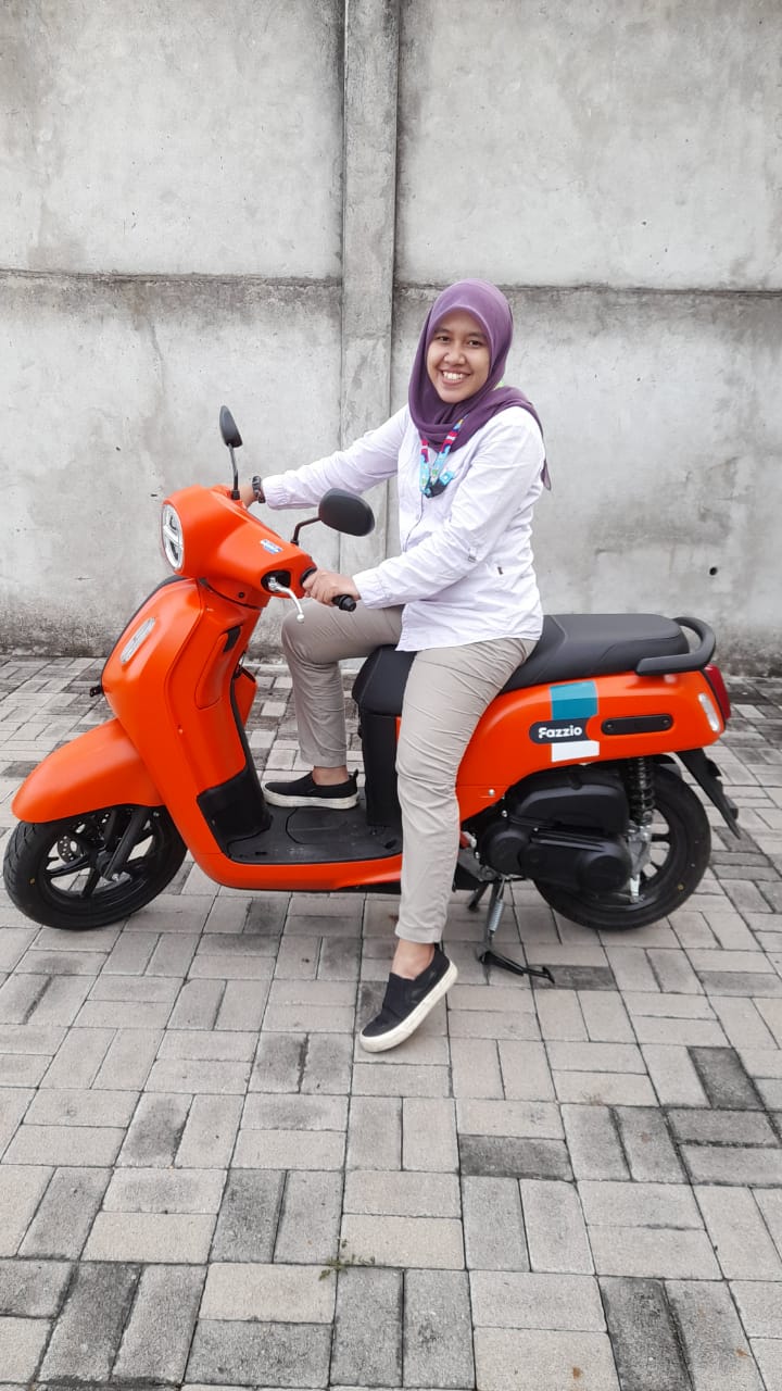 “ Yamaha Fazzio sudah paling yang terbaik, apalagi motor dengan warna orange ini buat hari – hari ku berwarna. Kalau di tanya soal fitur pasti sudah paling keren di kelas nya, yang paling di suka adalah Yamaha Fazzio ini mempunyai body yang kekinian dan sudah terhubung dengan Smartphone salah satu nya yang buat makin suka sama ini motor “ ujar Fitri sapaan akrabnya.
