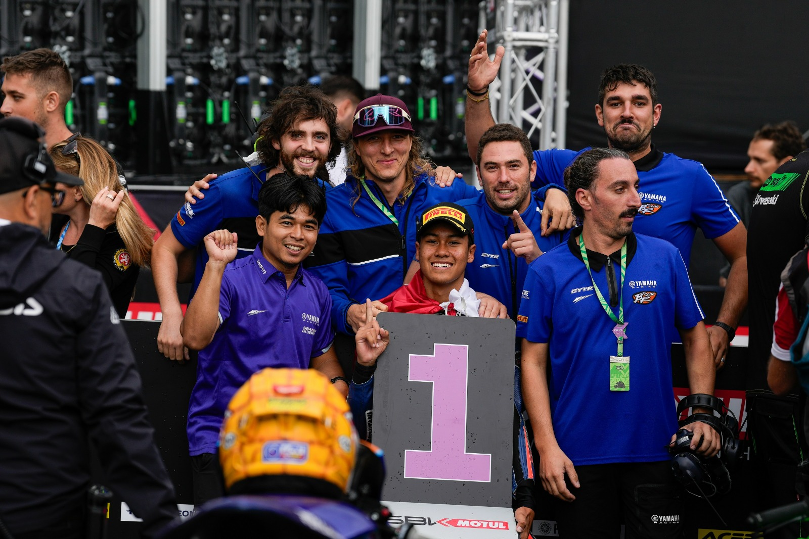 Lagu kebangsaan Indonesia Raya berkumandang indah dan pastinya menjadi kebanggaan Rakyat Indonesia. Euforia kemenangan menggema di berbagai penjuru Tanah Air. Respon luar biasa hadir dalam berbagai platform media sosial atas pencapaian rider binaan Yamaha Racing Indonesia tersebut.