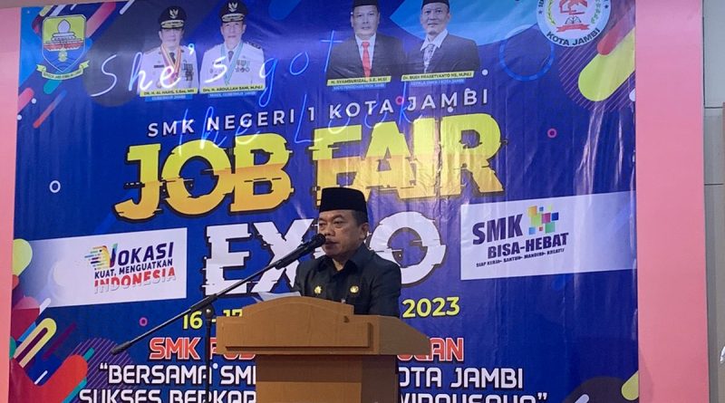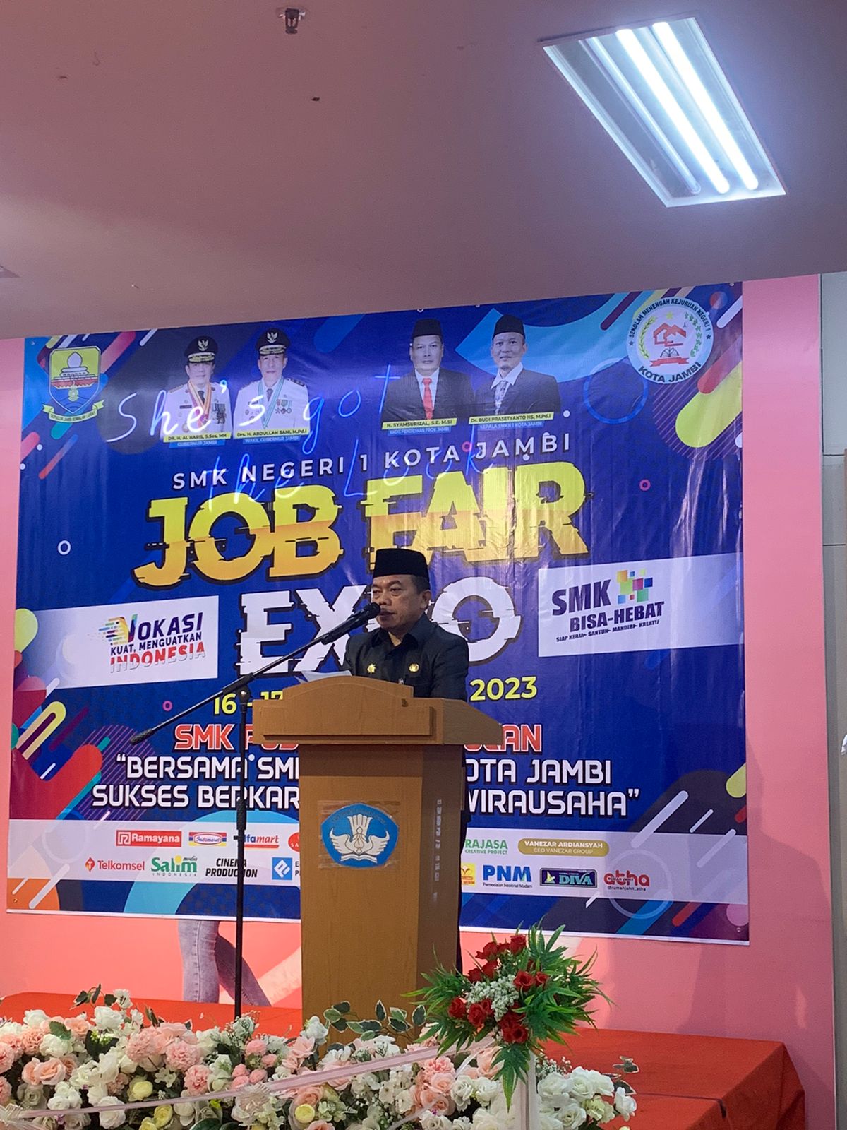 Jambi- Gubernur Jambi Dr. H. Al Haris, S.Sos, MH mengemukakan, Job Fair yang diselenggarakan SMK Negeri 1 Kota Jambi salah satu cara efektif tekan angka pengganguran di Provinsi Jambi, selain itu paling efektif menambah keahlian bagi seluruh siswa SMK, sehingga lulusan SMK menjadi lulusan yang siap kerja. Hal tersebut dikemukakannya saat Pembukaan Job Fair Expo SMK Negeri 1 Kota Jambi, yang diselenggarakan di Ramayana Kota Jambi, Sabtu, (16/09/2023). Adapun tema JOB FAIR Expo SMK NEGERI 1 KOTA JAMBI kali ini adalah “Bersama SMK Negeri 1 Kota Jambi Sukses Berkarir dan Berwirausaha”.
