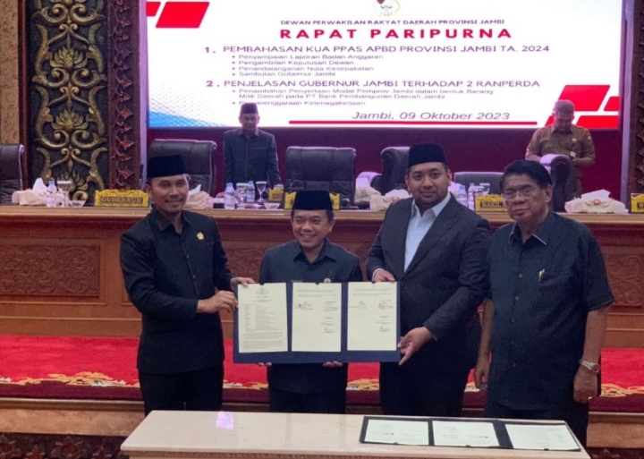 Pada kesempatan ini, turut dilakukan penandatangan antara DPRD Provinsi Jambi dalam hal ini pimpinan DPRD Provinsi Jambi bersama dengan Pemerintah Provinsi Jambi dalam hal ini Gubernur Jambi.(*)