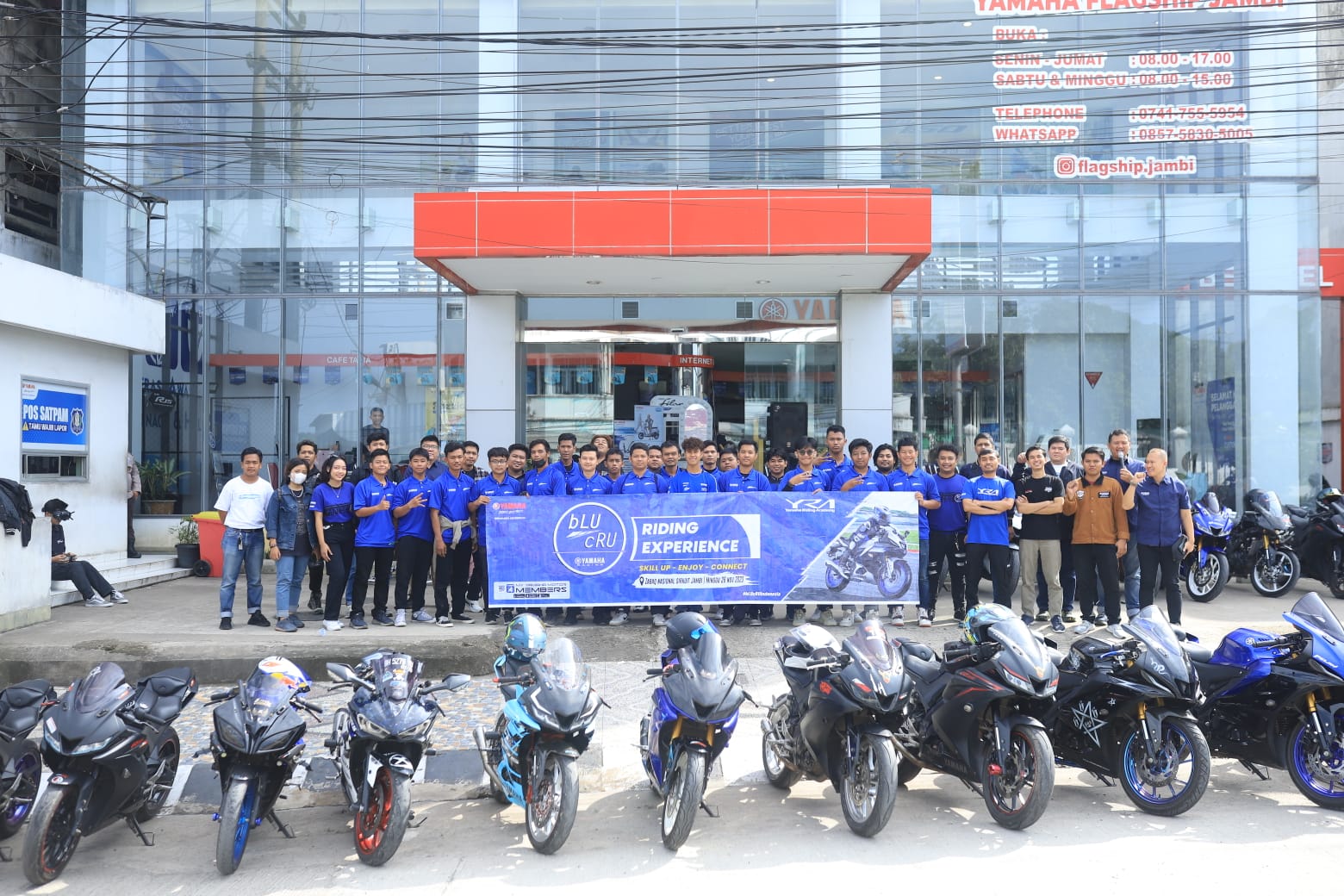 Kesempatan spesial didapatkan oleh puluhan konsumen dan komunitas Yamaha di wilayah Jambi, karena dapat menjalani bLU cRU riding experience memakai R15 Series bersama pembalap nasional YRI yaitu Aldi Satya Mahendra yang berprestasi mendunia. Mereka bisa mendapatkan pengalaman berkendara istimewa ini melalui aktivitas yang digelar Minggu 26 November 2023. Dimulai di Yamaha Flagship Shop Jambi dengan coaching clinic dari YRA, lalu touring menuju sirkuit nasional Zabaq berjarak 53,7 km.