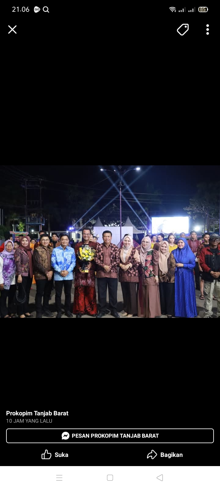 Tanjab Barat– Wakil Bupati Tanjung Jabung Barat, Dr. H. Katamso, S.A., S.E., M.E., didampingi Ketua Gabungan Organisasi Wanita (GOW) Kabupaten Tanjung Jabung Barat, Marina Septiani, S.IP., menghadiri acara Tungkal Fashion Street 2 dalam rangka memperingati Hari Batik Nasional Tahun 2025 dengan tema “The Greatest of Fathers” yang digelar di Alun-Alun Kota Kuala Tungkal, Sabtu malam (4/10).